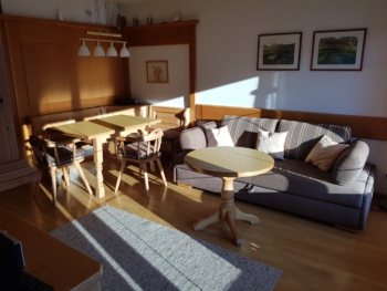 Sehr schöne Wohnung mit genügend Platz und tollem Ausblick. Wir haben Anfang Mai zu fünft mit Kleinkind eine Woche in dieser Wohnung verbracht. Die Wohnung ist mit allem eingerichtet, was man so braucht. Die Einrichtung würde ich als modern bezeichnen. Dank der beiden Badezimmer mit je einer Dusche gab es auch so gut wie nie "Stau": Die Lage ist ruhig am Feldrand gelegen. Der Startpunkt mehrerer Wanderwege ist fußläufig zu erreichen. Einziges Manko: Der Wasserkocher und die Kaffeemaschine waren für mein Empfinden sehr laut.